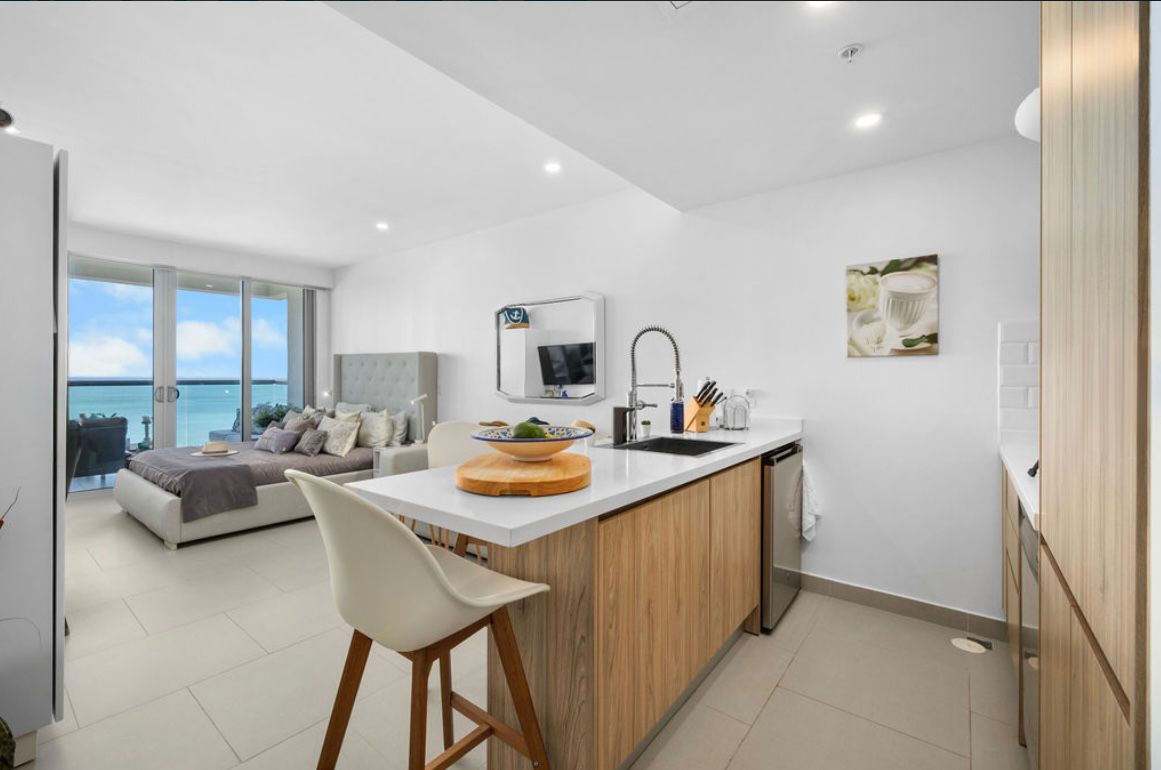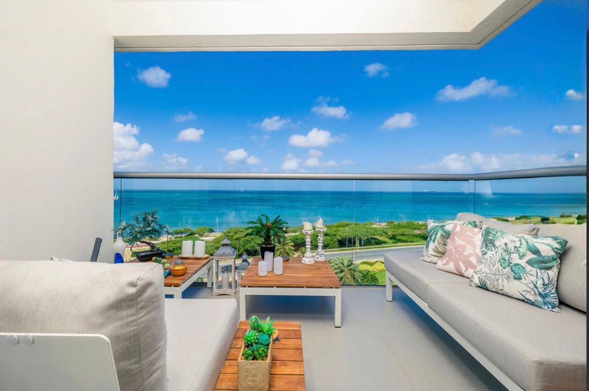 Perched on the sixth floor of Azure Residences, this striking modern studio captures the very essence of elevated island living. From the moment you step inside, your gaze is drawn outward to breathtaking, uninterrupted views of the Caribbean Sea. The seamless connection between indoor and outdoor space invites an abundance of natural light, creating an atmosphere that feels both expansive and serene.