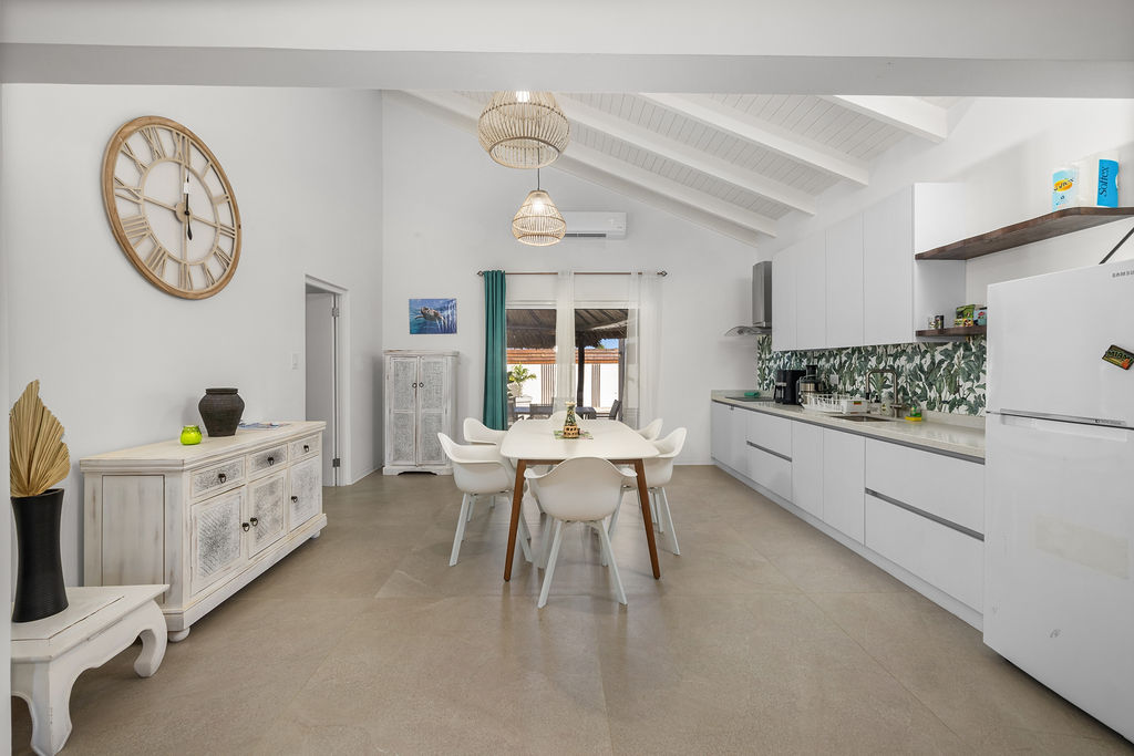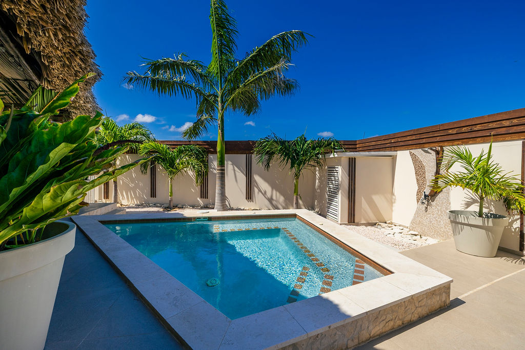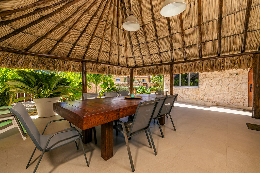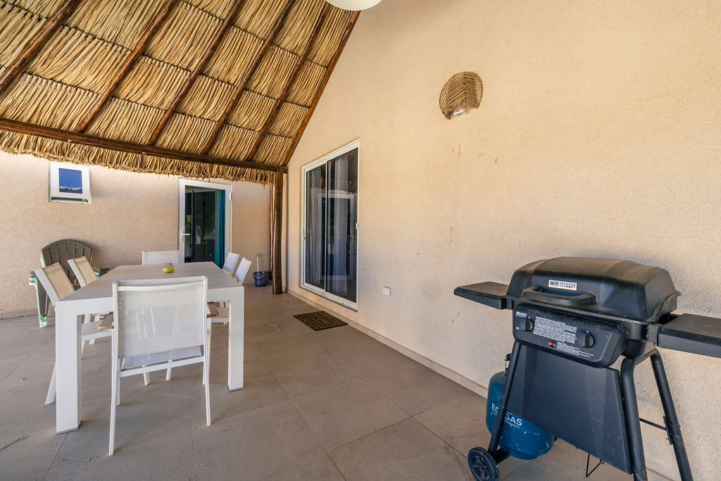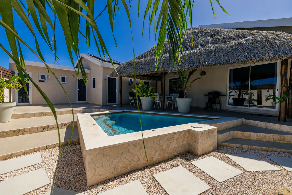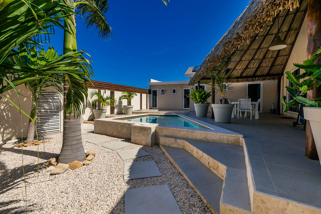 Outdoors, the estate transforms into a private retreat. A shimmering pool sets the tone for sunny afternoons, while a charming gazebo creates a shaded oasis perfect for lounging or alfresco dining. The inviting BBQ area completes the picture, encouraging memorable gatherings in Aruba’s year round warmth.